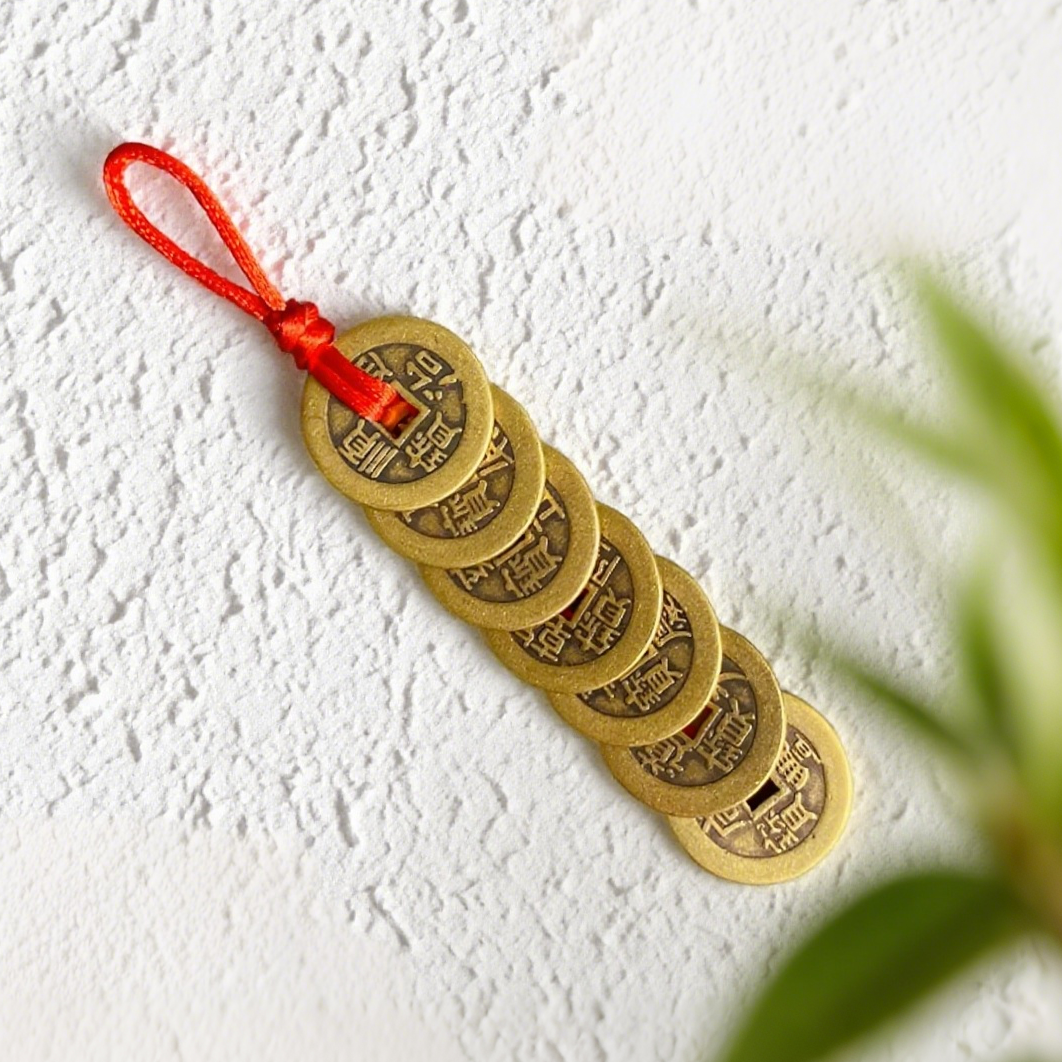 Set of seven antique-style coins, ideal for decoration or collection.